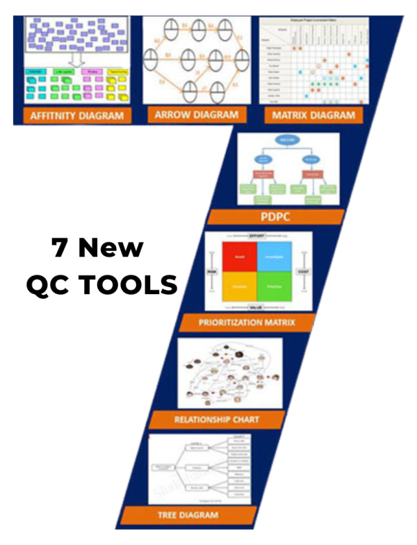 Seiring berkembangnya kompleksitas bisnis dan teknologi, muncul kebutuhan akan alat yang lebih fleksibel dan mampu menangani masalah non-kuantitatif atau abstrak. Di sinilah New QC Tools hadir sebagai pelengkap. New QC Tools dikembangkan untuk menangani data kualitatif dan masalah yang lebih kompleks dalam perencanaan, pemecahan masalah, dan pengambilan keputusan tim. Alat ini antara lain: