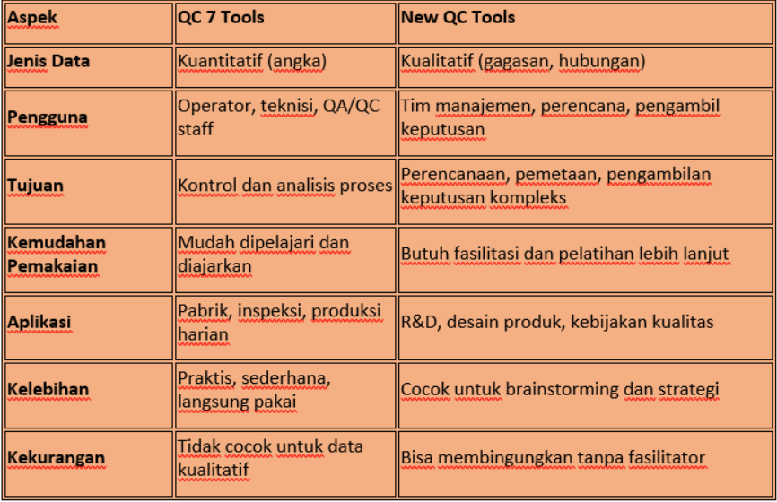 Dalam dunia industri manufaktur dan jasa, kualitas adalah kunci utama untuk memenangkan persaingan. Setiap perusahaan pasti ingin menghasilkan produk atau layanan yang konsisten, memuaskan pelanggan, dan minim kesalahan. Untuk mencapai tujuan ini, berbagai alat bantu telah dikembangkan—yang paling terkenal adalah QC 7 Tools (Quality Control Seven Tools) dan New QC Tools. Namun, pertanyaannya adalah: kapan kita harus menggunakan QC 7 Tools, dan kapan sebaiknya beralih ke New QC Tools?